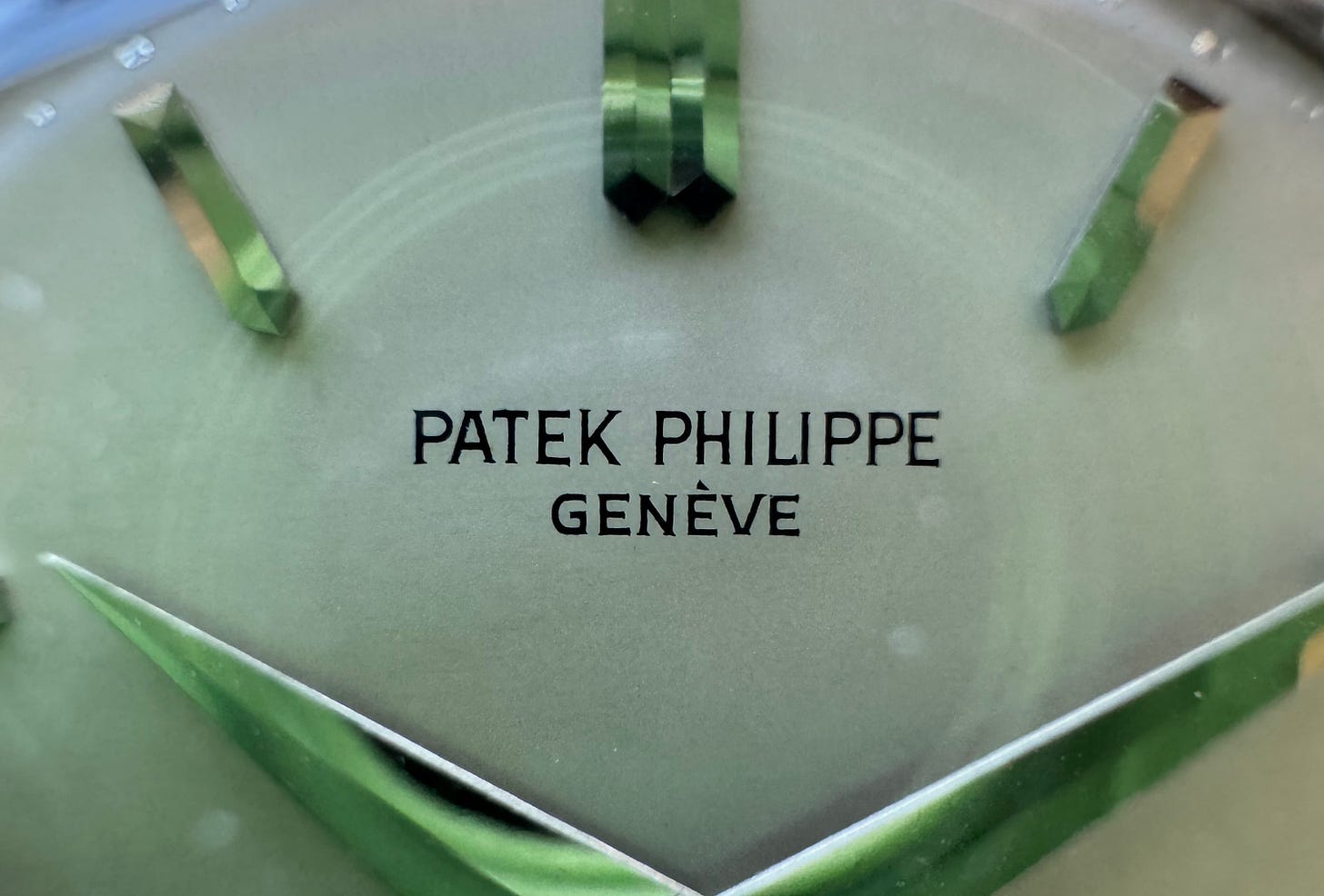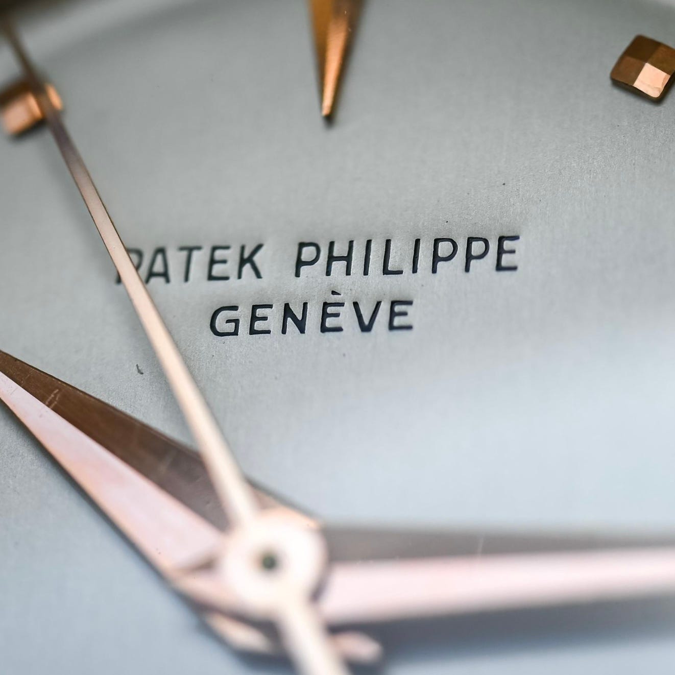 Type 1A - This is the quintessential appearance that most collectors visualize in their mind when the reference is discussed. It has a subtle two-tone appearance in most light conditions between the center and outer track. The signature and outer minute track are both engraved, enameled. The markers are geometric and alternate between faceted square and dagger markers at 12, 3, 6 and 9. There were three dial colors known of the 1A: silver (most common), pink and black (least common). Of the black dials, I’m aware of two in yellow gold and one in rose gold cases (one of each depicted later). The marker facets give the dial a touch of brilliance when light is reflected. The use of these marker type lends reference to the dial as one of the most aesthetically balanced watch dials known. The hands are gold dauphine with either a blued steel or gold center sweep seconds hand.