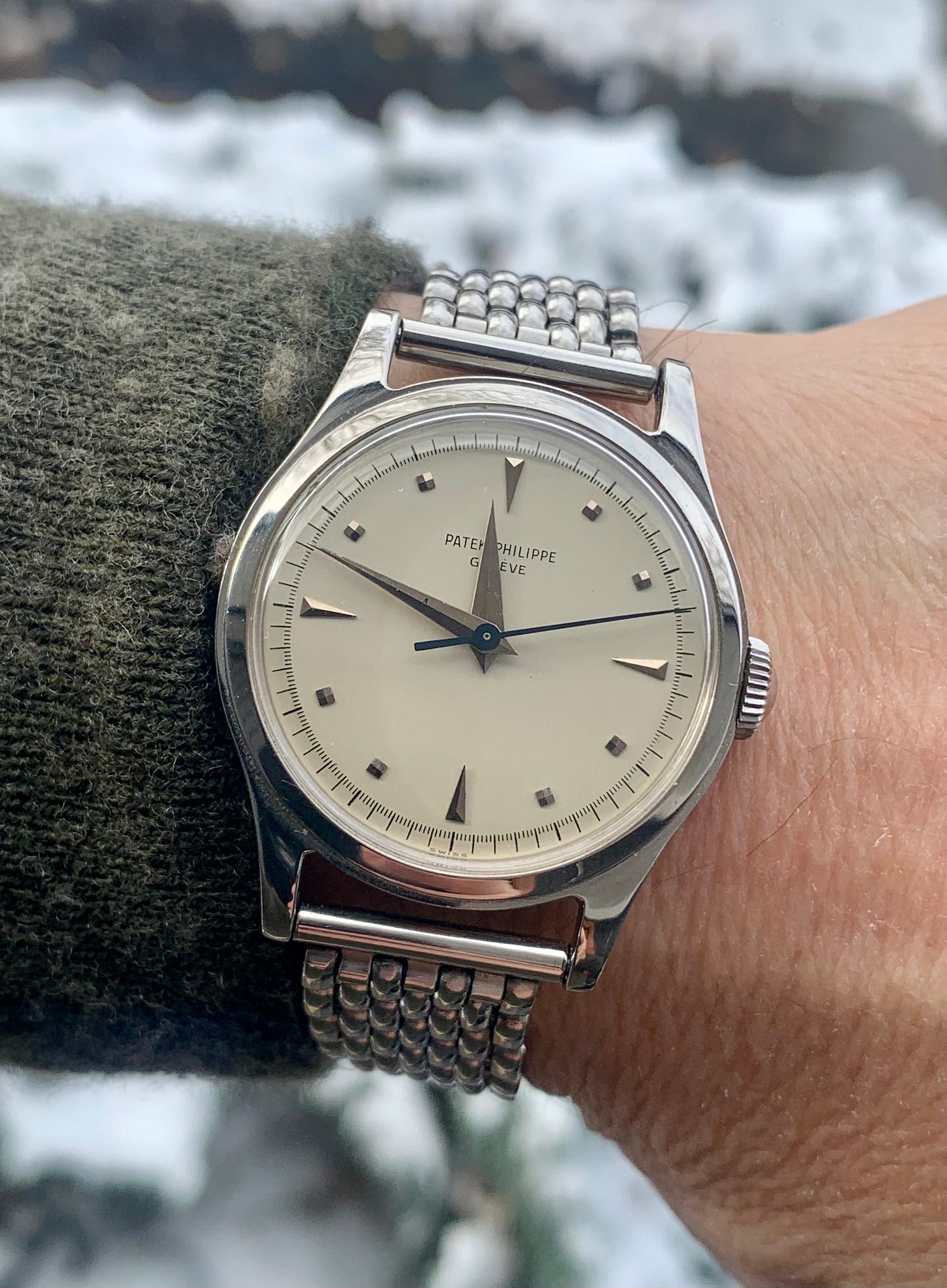 We’ve attempted to complete a thorough overview accounting for the many variations of ref. 2508 examples known and tips for collecting. We’ll close out with a few wrist shot images of different types seen on period bracelets.