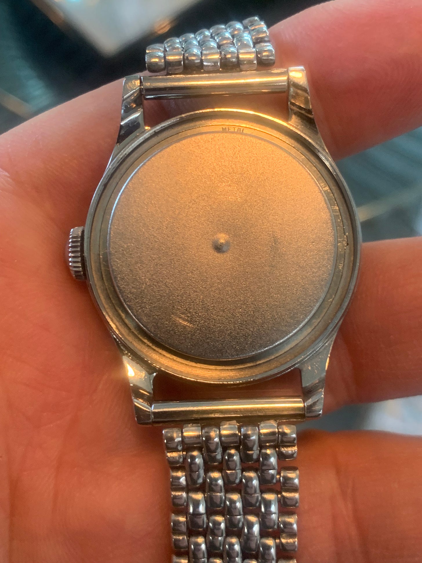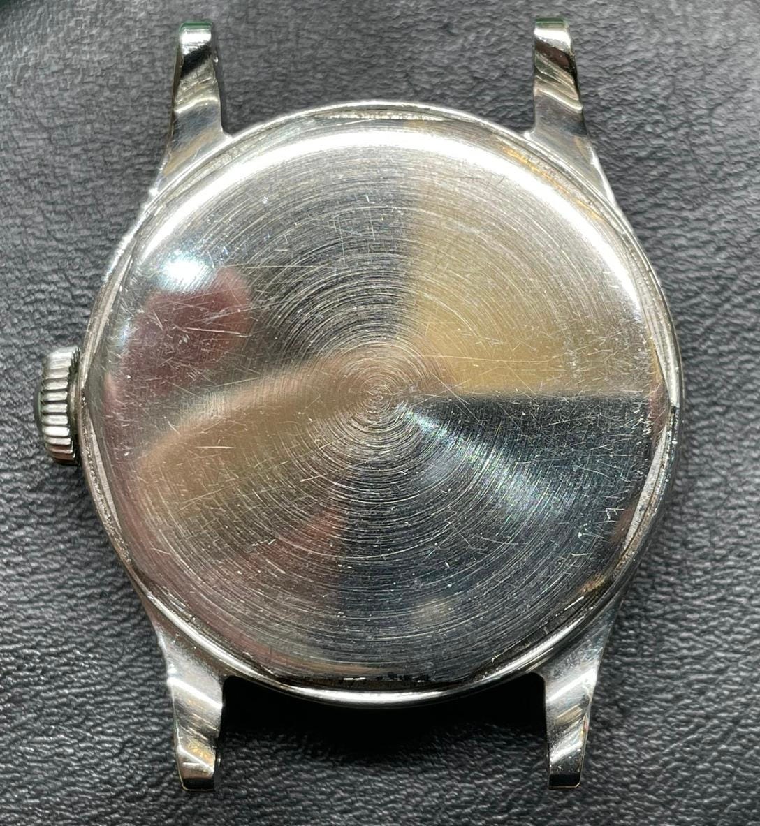 The case back was circular brushed and depending on the amount of wear or metal, the brushing pattern may not be completely visible. The screw-back case should have sharp points on the notches.