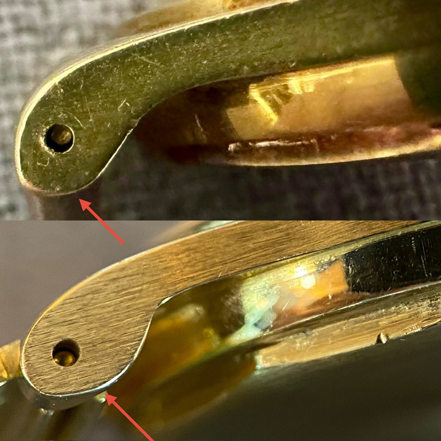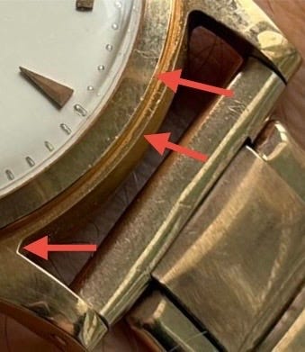 Another area to inspect for case condition is the step down from the bezel, outer case edge and notch by inner lug. It’s a good area to inspect because it would not have the wear from routine use compared to the case sides.