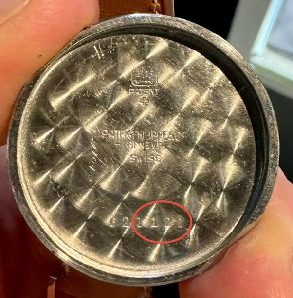 So there we have it - records of several early and rare ref. 565A examples with matched stampings between the lower lugs and the inner case back. Perhaps this was a practice Taubert did for Patek in the early run of the ref. 565 in the late ‘30’s and was not continued beyond the early ‘40’s. What I’ve not observed, are any examples of precious metal cases showing a similar stamping.