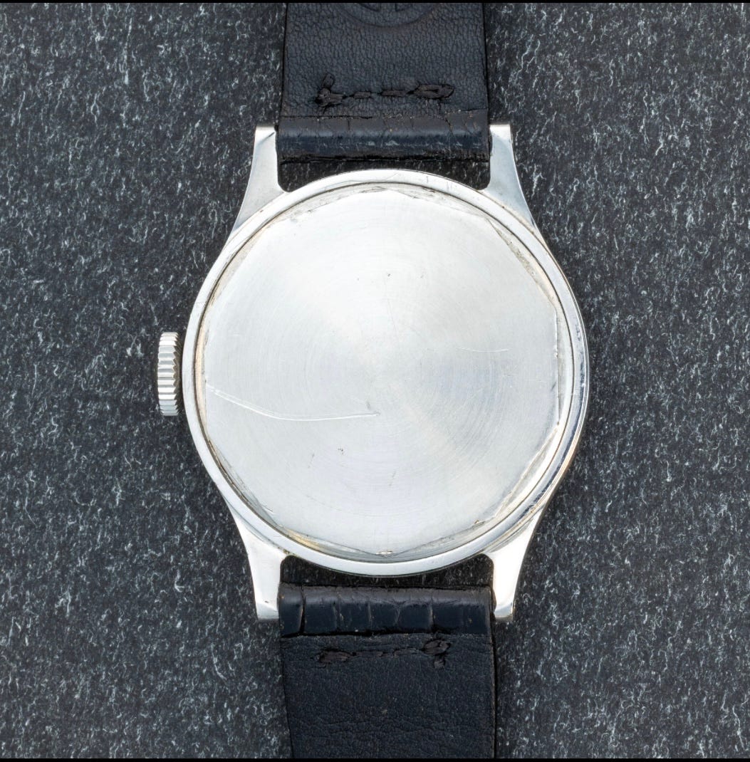 In a previous article referenced above, a very rare black-dial example from 1939 was illustrated with archival confirmation and a printed “Freccero” retailer signature. It is included here for its relevance to the features observed on the present example.