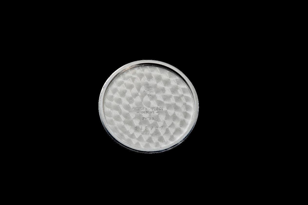 This practice, chiefly observed on steel examples produced between 1939 and 1943, remains occasional and disappears rapidly during the 1940s. It does not constitute a manufacture standard nor a commercial marking, but rather an internal technical procedure. It is not, however, attested on contemporary waterproof chronographs, notably the Patek Philippe Reference 1463, introduced in 1940.