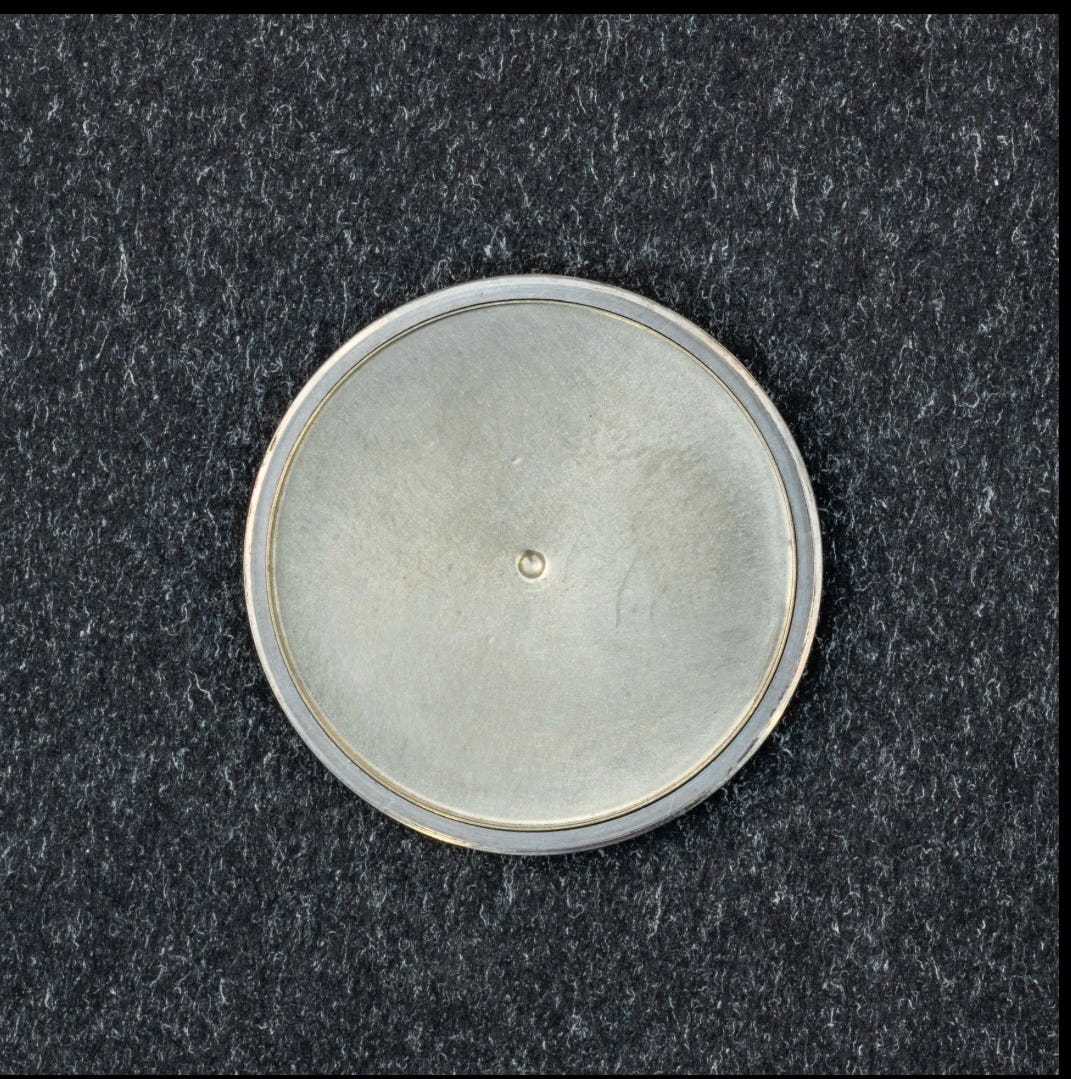 The dust cap is also present, which helps to protect the movement from magnetism, moisture and dust. When these references are found complete with an inner dust cap, often times the dials have survived in well-preserved condition for the age.